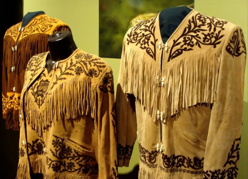 🔸 Se hace con pîêl de becerro o gamuza de venado y lleva grabados de flores blancas y largos flecos....