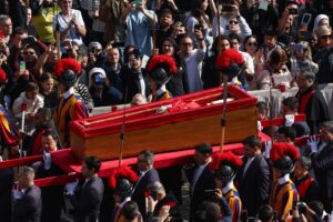 🔸 Los restos del pontífice fueron trasladados desde la Capilla de Santa María hasta la emblemática Basílica de San Pedro....