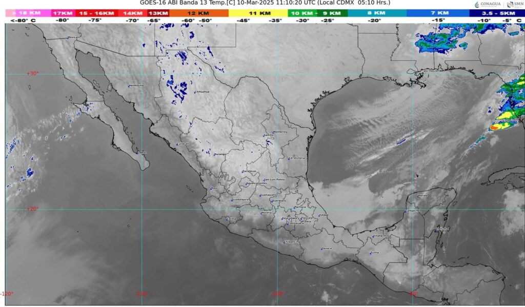 A su vez, la masa de aire frío asociada al sistema frontal mantendrá ambiente fresco a frío con posibles heladas en el norte, noreste, centro y oriente de México, así como evento de “Norte” de 40 a 60 kilómetros por hora (km/h) con rachas de 80 a 100 km/h en el istmo y golfo de Tehuantepec; y durante la mañana, rachas de 50 a 70 km/h en las costas de Veracruz, Tabasco, Campeche, Yucatán y Quintana Roo.