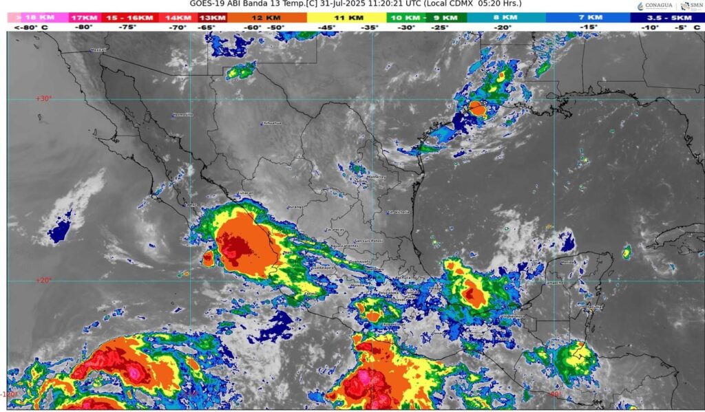 🔸 Provocarán lluvias en el sur de la República Mexicana y en la Península de Yucatán.