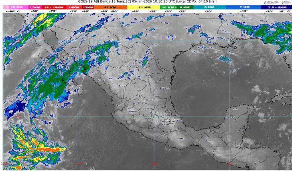 Por otra parte, una circulación anticiclónica en niveles medios de la atmósfera mantendrá cielo despejado y baja probabilidad de lluvia sobre el resto de la República Mexicana.
